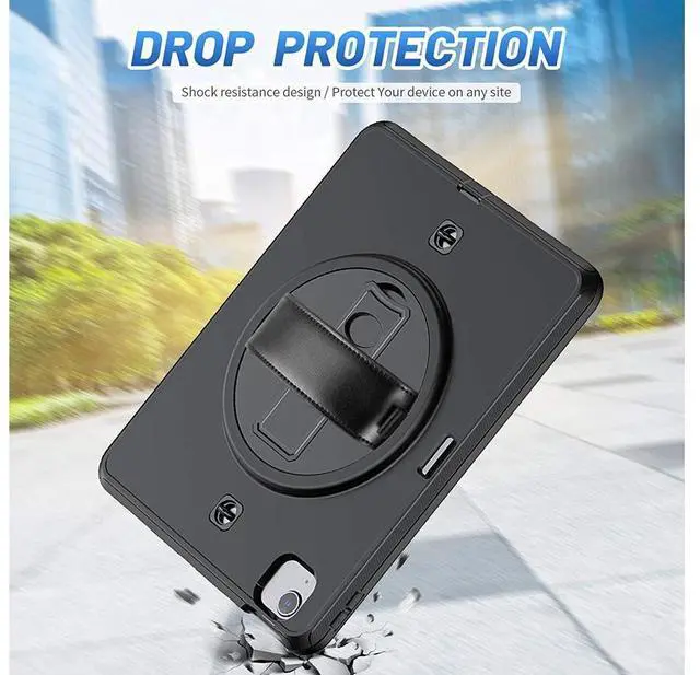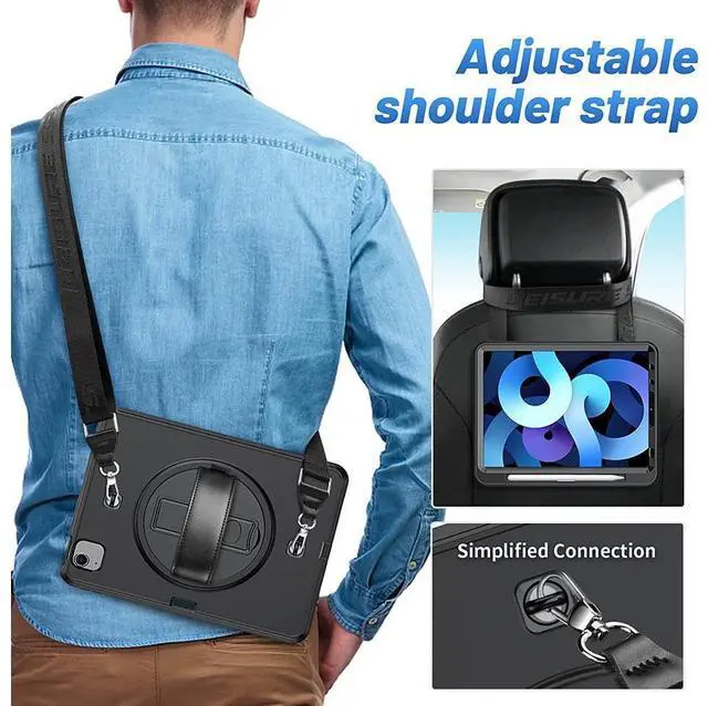 [Adjustable Hand / Shoulder Strap] The hand strap on the back helps you easily hold tablet, avoiding falling due to skidding. Easier to use the tablet when travelling, working or doing outdoor activities. Adjustable shoulder strap is kids-friendly for carrying the device, it could also hang wherever you want.