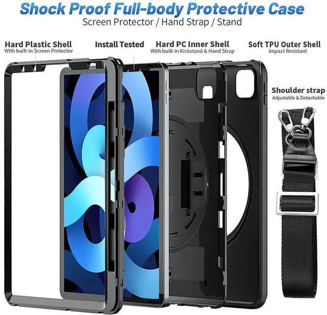 [Full Protection] 3-Layer rugged shockproof case includes soft but tough TPU back, Hard PC Plate and frame with built-in screen protector, providing perfect protection for your iPad against against accidental drops, scratches, bumps and shock.