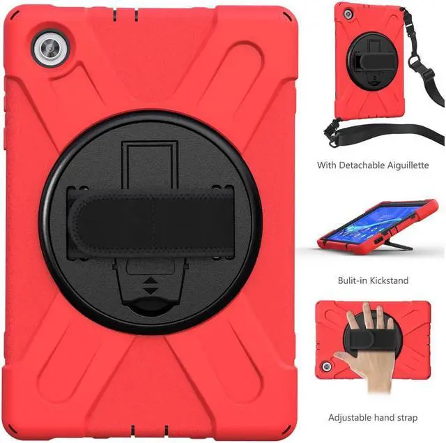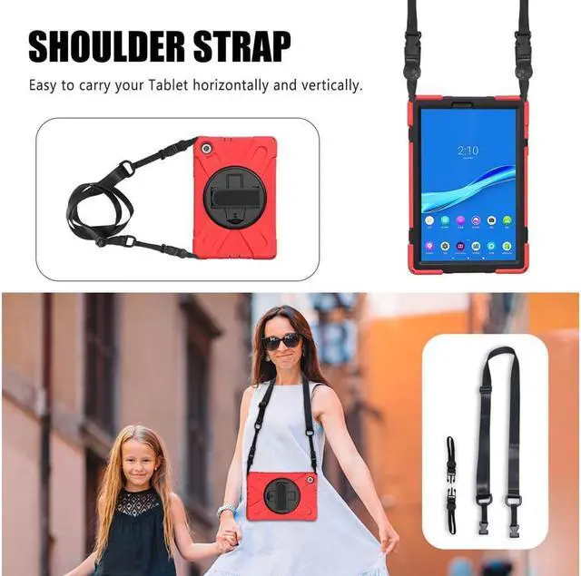 BUILT-IN KICKSTAND + ADJUSTABLE HAND STRAP + PORTABLE SHOULDER STRAP: 1: 360 degree stand is convenient for vertical/horizontal watching videos, typing, and conference. Free your hands! 2: Soft leather fabric Hand strap is adjustable and helps hold the center gravity of your tablet. 3: Nylon cross-body strap can help carrying with a more secure way during hiking, traveling, and car seat. Perfect choice for active people and outdoor gamers!