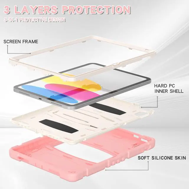 Shockproof Rugged Design: This case for iPad 10th generation kids made of durable hard PC+silicone, 3-layer full body protection structure, provide a perfect protection & anti-scratch.
