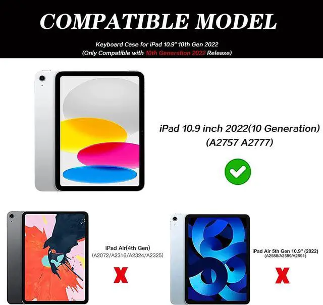 Compatibility: This keyboard case is Only Compatible with iPad 10th Generation 10.9 inch 2022 released.