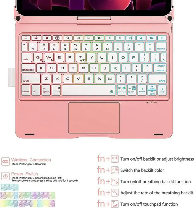 7 Colors Backlit: This premium keyboard case for iPad 10th Generation 10.9 have 7 backlight colors and multiple breathing rates. You can adjust the color of the backlight and the breathing rate according to your hobbies to make your life more comfortable.