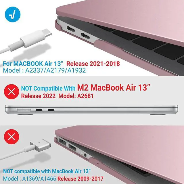 • Designed ONLY to be compatible with MacBook Air 13 inch with Retina Display and Touch ID 2022 2021 2020 2019 2018 Release (Models: A2337 M1 A2179, A1932 - MGN63LL/A, MGND3LL/A, MGN93LL/A, MGN73LL/A, MGNE3LL/A, MGNA3LL/A, MWTJ2LL/A, MVH22LL/A, MWTL2LL/A, MWTK2LL/A, MVH52LL/A, MVH42LL/A, MVFH2LL/A, MVFM2LL/A, MVFK2LL/A, MVFJ2LL/A, MVFN2LL/A, MVFL2LL/A, MRE82LL/A, MREE2LL/A, MREA2LL/A, MRE92LL/A, MREF2LL/A, MREC2LL/A). WARNING: This case is NOT compatible with other model laptops.