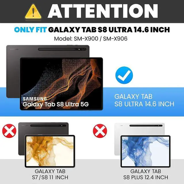 Compatibility: Only Fit for Samsung Galaxy Tab S8 Ultra 14.6 Inch 2022 (Model:SM-X900/SM-X906). It is Not fit to any other devices. Please kindly check the model number in the settings before purchase.