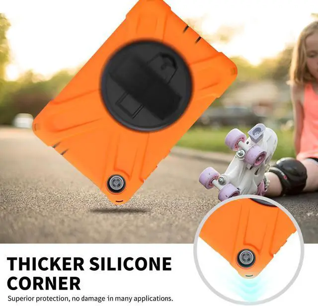 CHILDPROOF, HEAVY DUTY, DROP PROOF, RUGGED TABLET PROTECTOR - Durable rubberized silicon body offers ultimate shockproof protection, hard plastic shell frame protects your tablet from being scratching. Innovative Design, thicken four corners, protect your tablet even if it falls from the second floor. The Tablet Case provides a perfect protection against accidental drops, scratches, dust, bumps and shock