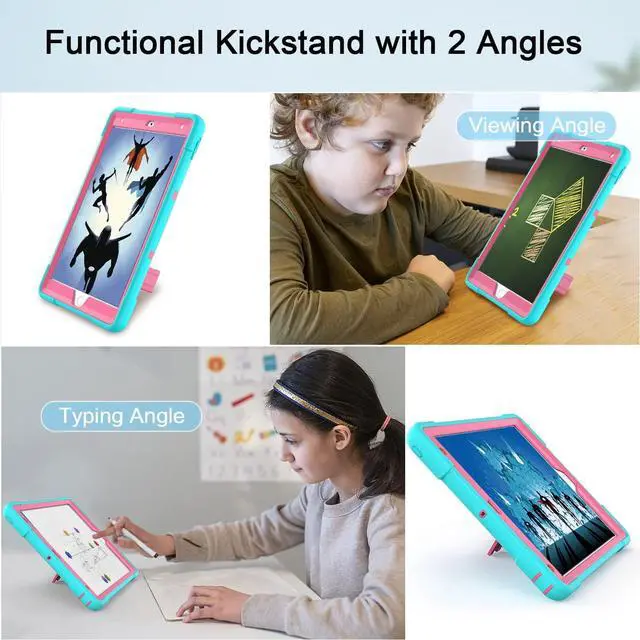 The kids case for ipad 10.2 inch 9th/8th/7th gen with 2 angles: typing angle & viewing angle. Meet the needs of children to study, watch videos and playing games, etc.