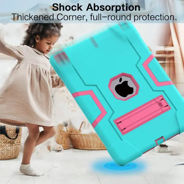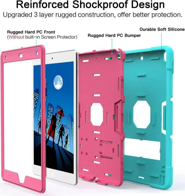 Shockproof Rugged Design: This case for iPad 9th generation kids made of durable hard PC+silicone, 3-layer full body protection structure, provide a perfect protection & anti-scratch. NOTE: This ipad 10.2 inch case WITHOUT built-in screen protector.