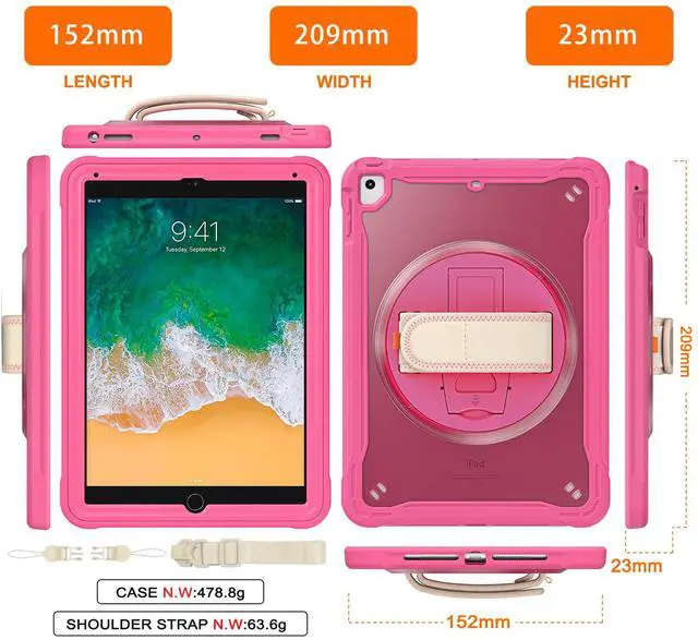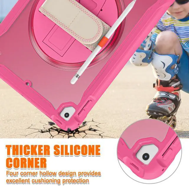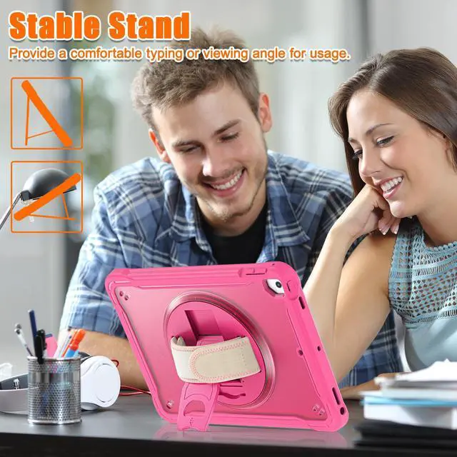 Stable rotatable kickstand: The iPad case with built-in 360 degree stand supports vertical/horizontal viewing of videos, typing and conference. Pick a nice angle, free up your hands!Ideal for kids stay-at-home online education.