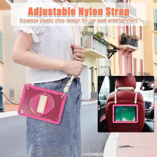 ADJUSTABLE HAND & SHOULDER STRAP: Handle can be adjusted depending on the dimension of your hand.The shoulder strap supports a more portable and secure way of carrying your iPad when you are outdoors.Perfect for during hiking, travelling and car seat.