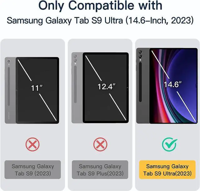 Compatibility: Only Fit for Samsung Galaxy Tab S9 Ultra 14.6 inch 2023 (Model:SM-X910/SM-X916B/SM-X918U). It is Not fit to any other devices. Please kindly check the model number in the settings before purchase.