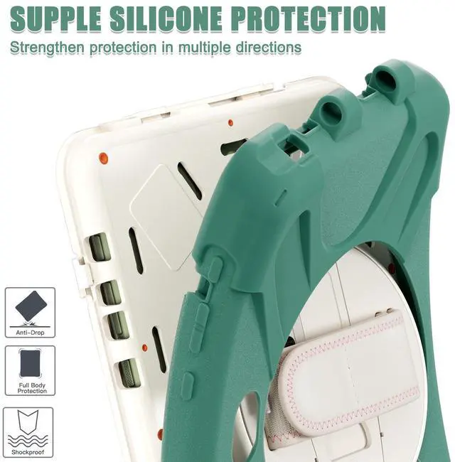 [Detailed Design]: a dust cover is specially equipped at the hole, effectively preventing the intrusion of dust and water droplets, ensuring that your device interface is always clean and safe. The carefully arranged sponge pads inside also help dissipate heat from the tablet and extend the life of the device.Built-in screen screen protector, to create the full-body protection for your tablet. Not only shockproof/long-lasting but also comfortable hand feeling