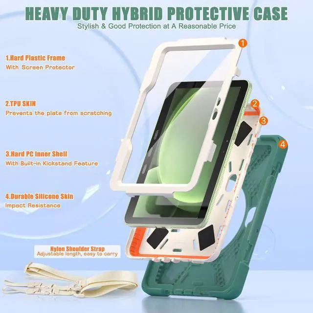 [Armor Protective Case]: 3-in-1 design, hard polycarbonate inner layer protect your Galaxy Tab Active5 Pro from drops, dirt, damage and bumps; Soft silicone outer layer provides anti-slip, anti-scratch and shockproof protection function