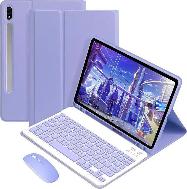 [Multiple Viewing Angles]: With this sleek and stylish design, our small keyboard case can turn your tablet into a laptop in less than a second. You can change your tablet from different viewing angles to landscape mode to provide the most comfortable viewing position. Good for working, writing, or watching videos.