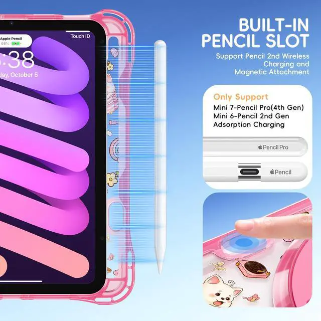 Built-in pencil holder: Built-in pencil holder design makes your iPad convenient to carry and better protect your Apple Pencil (Support 2nd Pencil wireless charging)