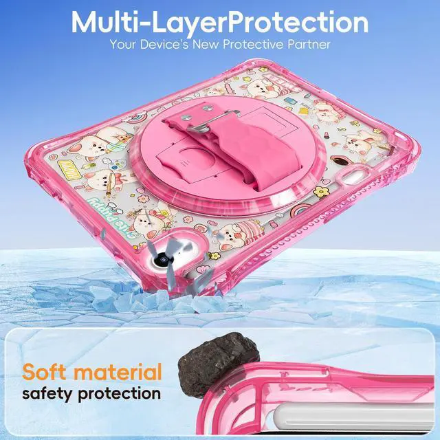 Shockproof Protection Design and Precise Cutouts: A hard PC front cover and quality TPU back surface,translucent design. the material is dirt-resistant, lightweight and easy to carry.Don't worry about your iPad slipping out of your child's hand and breaking. Full access to all ports, buttons and cameras without removing the case
