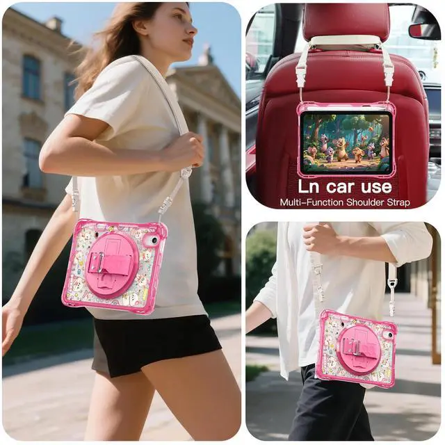 Adjustable Shoulder Strap: Attach the shoulder strap to any two corner holes of this ipad case . Carry your iPad conveniently wherever you are at home, at work,or outdoor. You can also hang it behind the headrest of the car seat for shared view