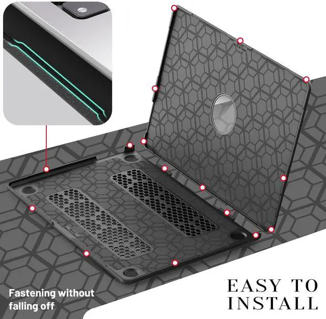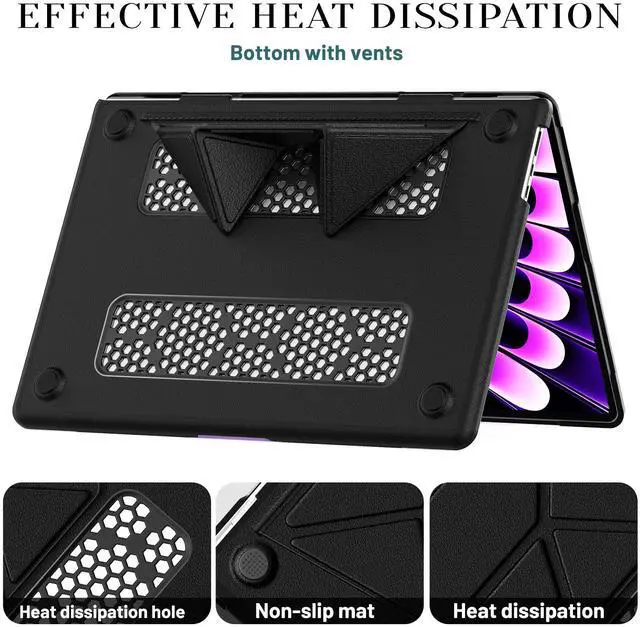 Heat Dissipation Designed for Performance: With its perforated bottom shell, this case enhances ventilation, ensuring your MacBook Air 15 stays cool during prolonged use or intensive tasks. This feature is essential for maintaining your device’s longevity and performance.