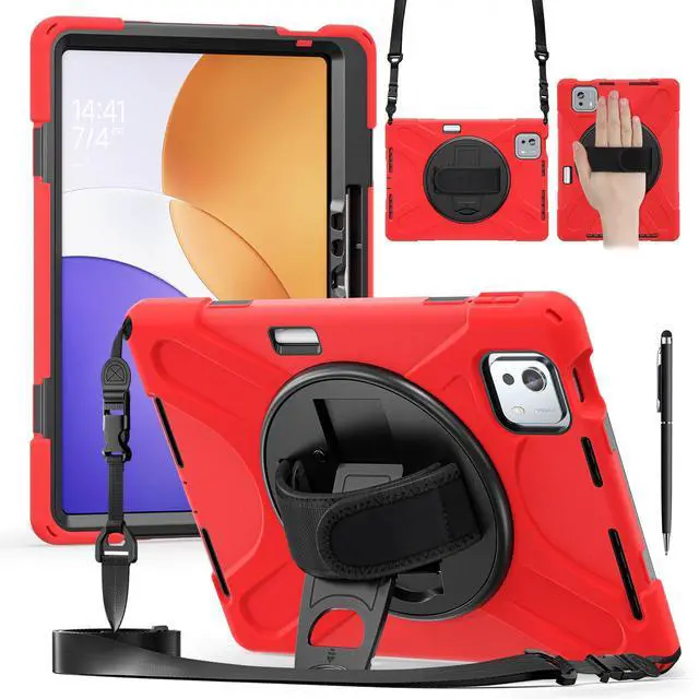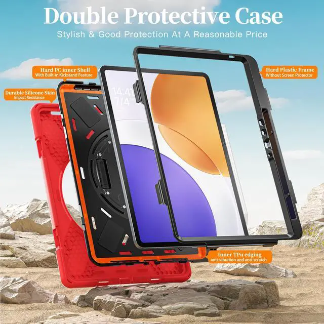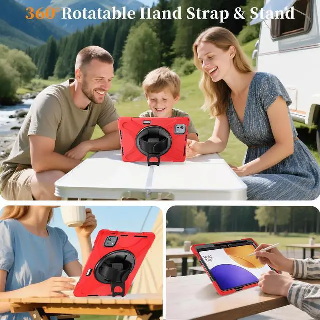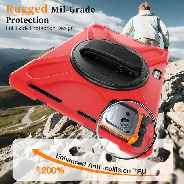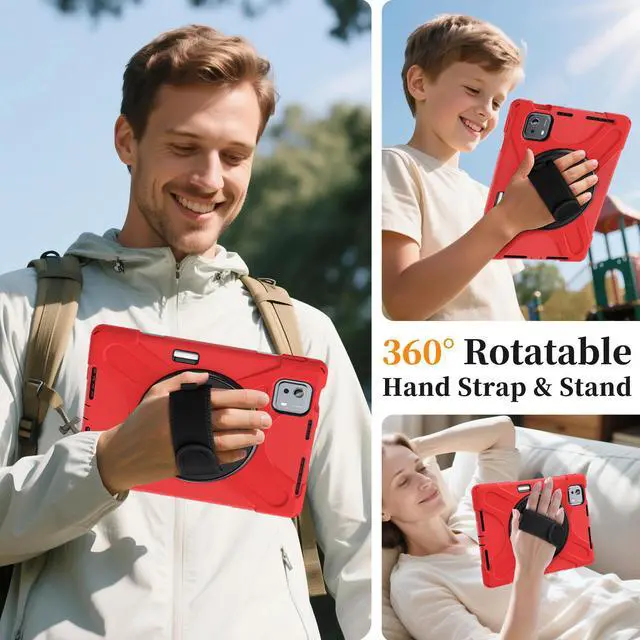 360° Swiveling Stand & Hand Strap: Located on the back of shockproof case, built-in 360 degree rotating kickstand and adjustable handle hand strap provides a more flexible and convenient way to use your tablet during work, study or journey, ideal for students,teachers,engineers,cashiers and waiters,etc.