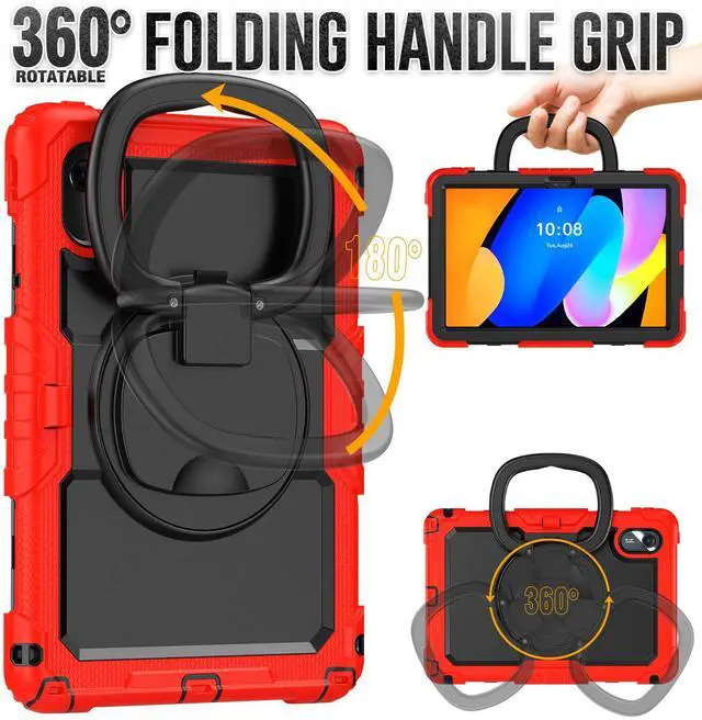 WERLEO Case for Lenovo Idea Tab 11 inch 2025/Tab K11 Gen 2 11"/Lenovo Tab M11/ K11 LTE 11'' 2024 Shockproof Cover with Screen Protector/Pen Holder/Rotating Hand Strap/Stand Red