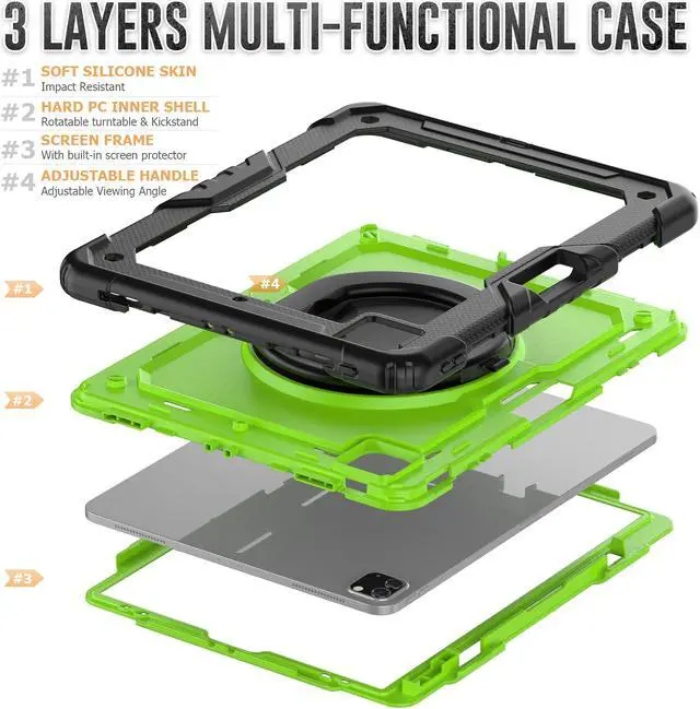 [Superior Protection with Screen Protector] 3-layer total front-and-back protection case for iPad Pro 12.9 inch, combined with 1-layer soft silicone and 2-layer hard polycarbonate front frame and back cover, providing perfect protection for your iPad against accidental drops, scratches and dust.