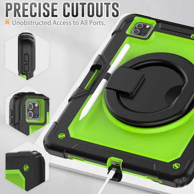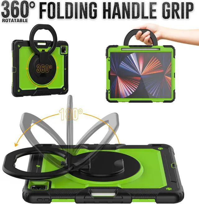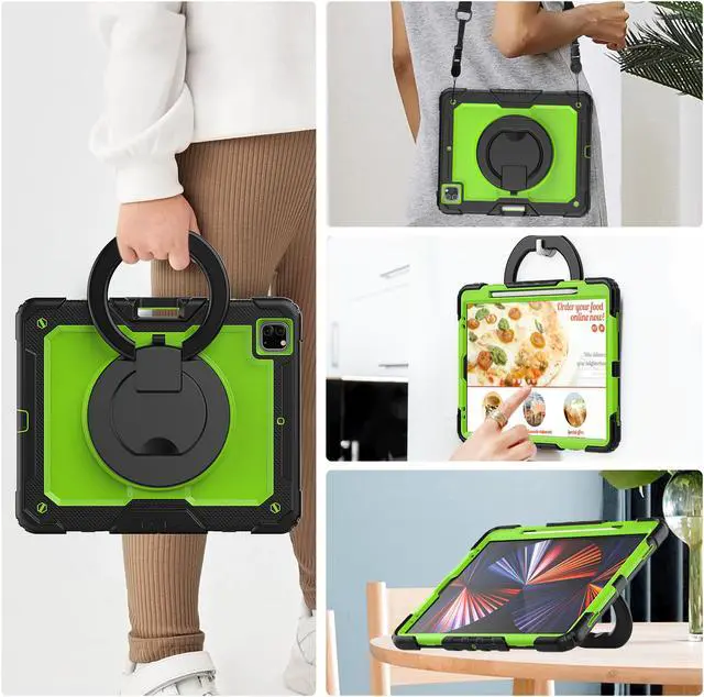 [Rotating Kickstand & Adjustable Hand Strap & Portable Shoulder Strap]: 360 degree rotating kickstand provides multi-angle viewing, adjustable hand strap makes you hold or use your iPad easily,portable shoulder strap makes your hands free, helps carry your iPad conveniently when you are at work, on a trip or gaming with kids.