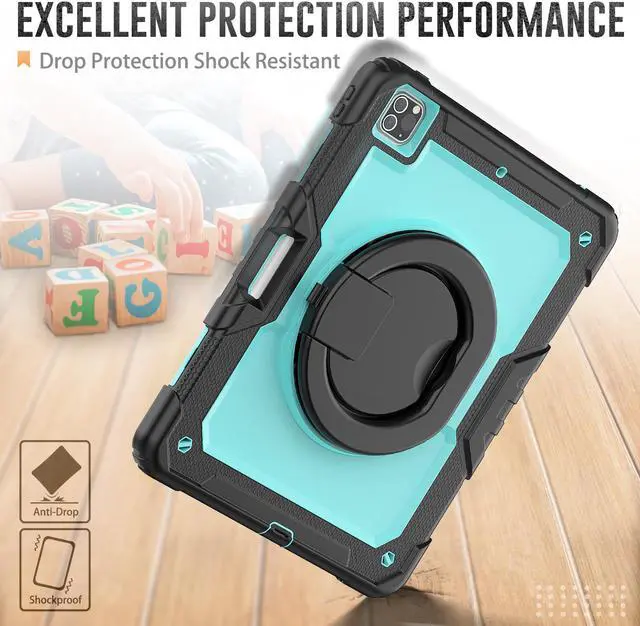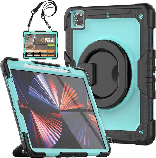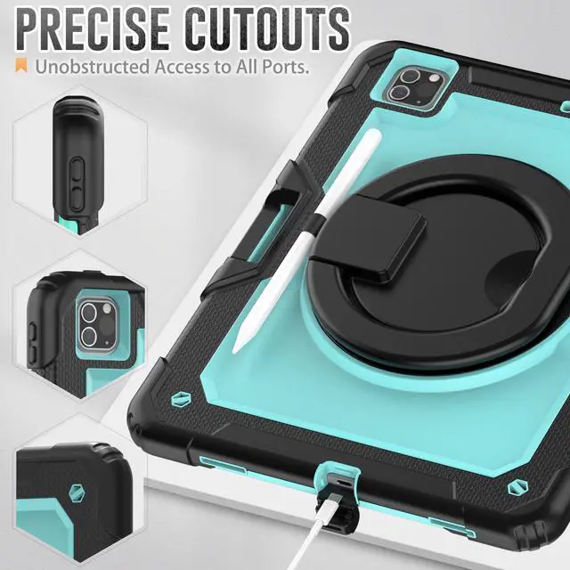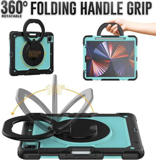 [Rotating Kickstand & Adjustable Hand Strap & Portable Shoulder Strap]: 360 degree rotating kickstand provides multi-angle viewing, adjustable hand strap makes you hold or use your iPad easily,portable shoulder strap makes your hands free, helps carry your iPad conveniently when you are at work, on a trip or gaming with kids.