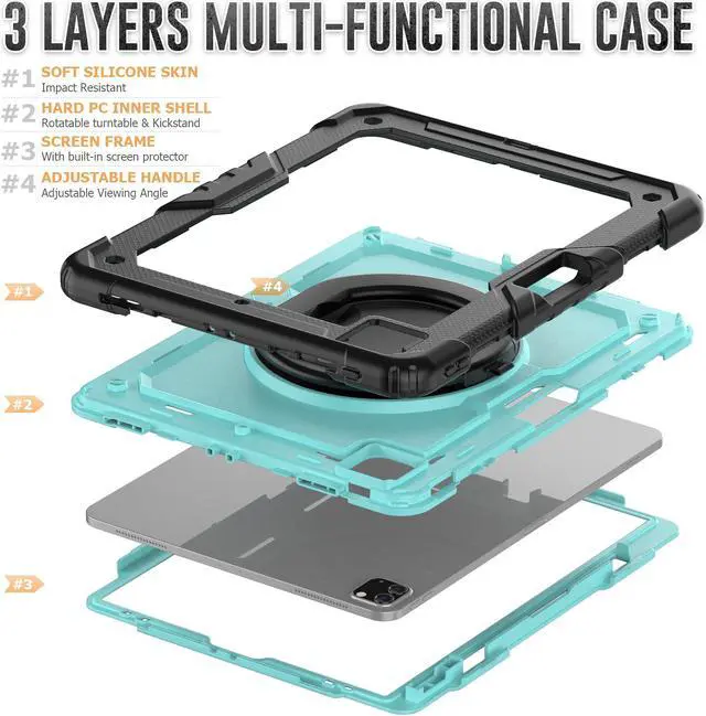 [Superior Protection with Screen Protector] 3-layer total front-and-back protection case for iPad Pro 12.9 inch, combined with 1-layer soft silicone and 2-layer hard polycarbonate front frame and back cover, providing perfect protection for your iPad against accidental drops, scratches and dust.