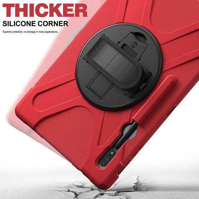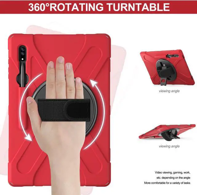 360 degree rotatable kickstand offers optimum position for typing or viewing; ergonomic and comfortable back belt handle allows you to grip your tablet securely and steadily with one hand, worry-free from dropping it.