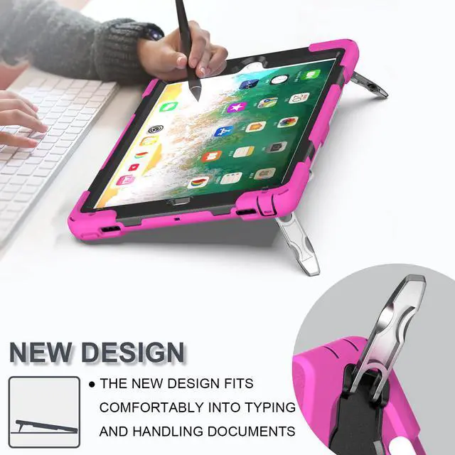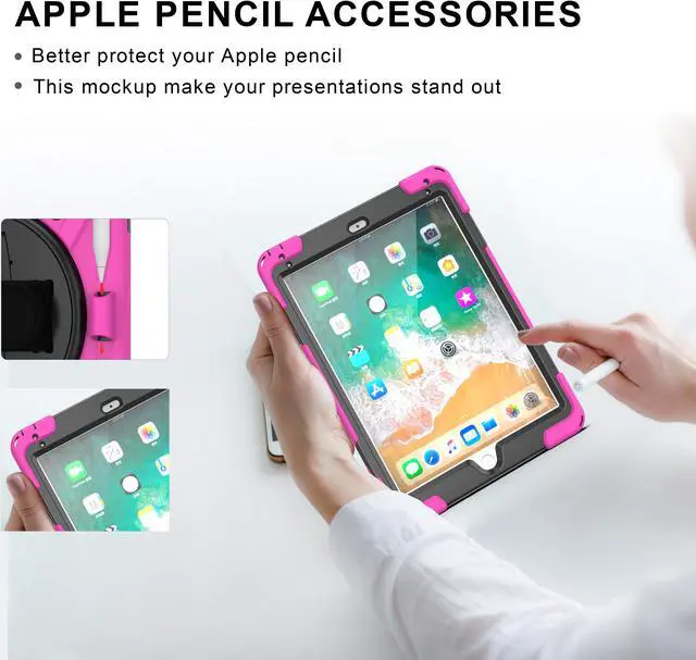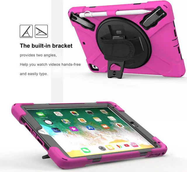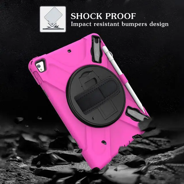 360 Degree Rotating Stand: On the back side of the high impact resistant plastic bumper iPad Pro 9.7 inch case there is a sturdy 360° swivel foldable kickstand.Convenient for watching videos,conferences, travelling.