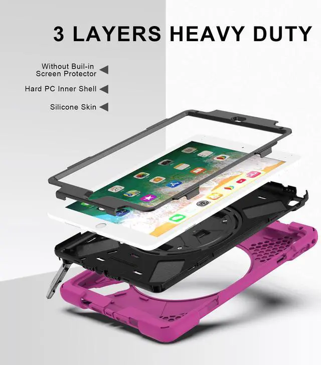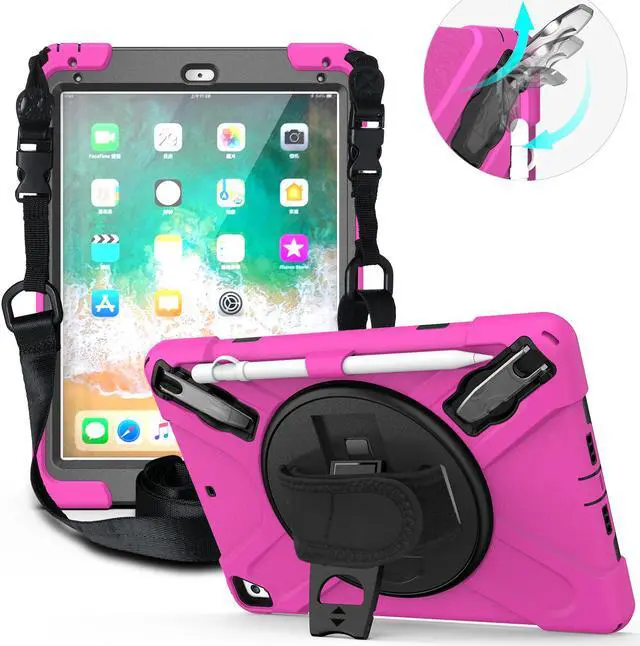 Ajustable Shoulder Strap And Hand Strap: The armor heavy duty rugged hard nonslip iPad Pro Case 9.7 comes with a detachable and attachable shoulder strap,so you can carry the tablet on neck or shoulder like a bag and sling it on car head rest. The handle hand grip is also adjustable, which allows you to securely grip your iPad with one hand.