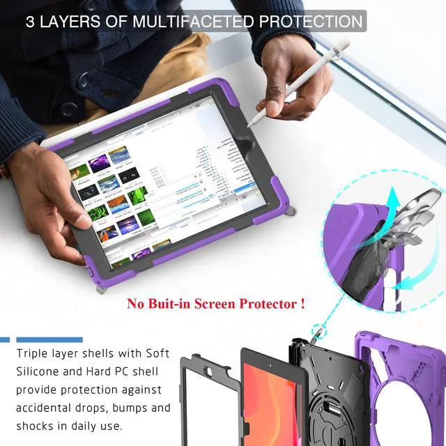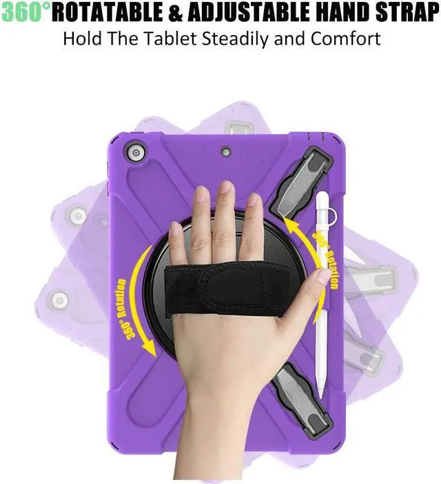 • Ajustable Shoulder Strap And Hand Strap: The armor heavy duty rugged hard nonslip iPad Case comes with a detachable and attachable shoulder strap,so you can carry the tablet on neck or shoulder like a bag and sling it on car head rest. The handle hand grip is also adjustable, which allows you to securely grip your iPad with one hand.