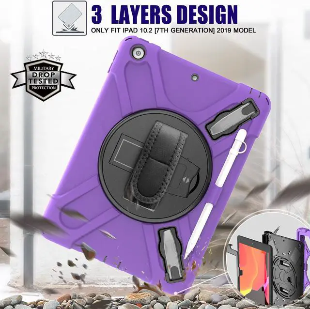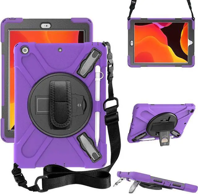 BONAEVER For iPad 9th 8th 7th Generation 10.2 Case with Pencil Holder Stand and Strap Shoulder Strap Shockproof Cover for iPad 10.2 inch 2021 2020 2019