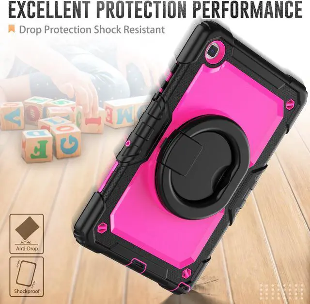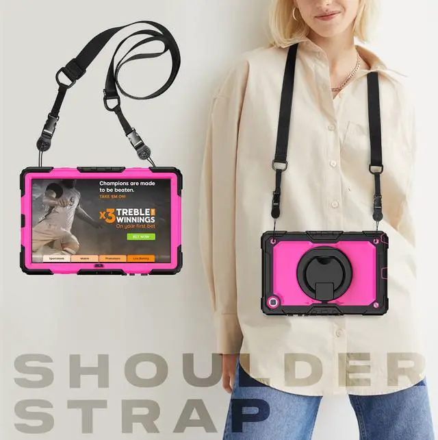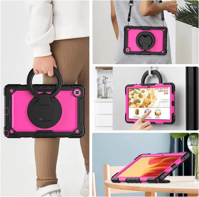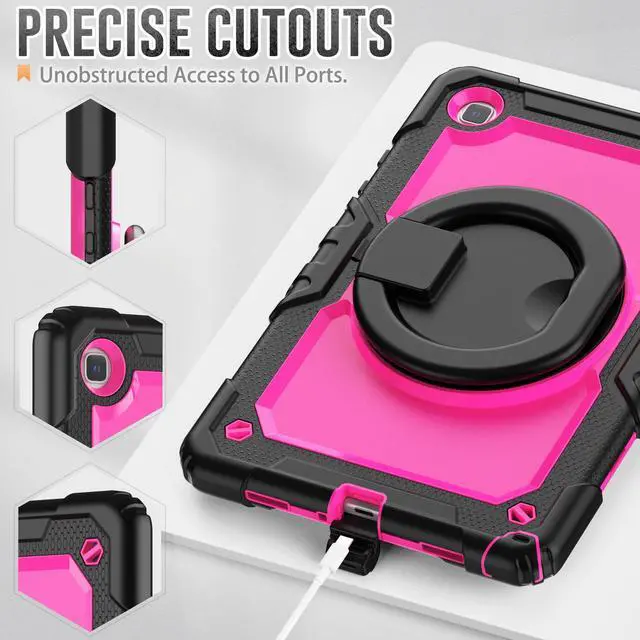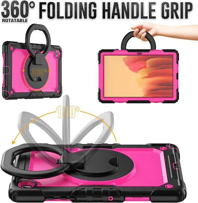 • 360° Rotatable Kickstand & Hand Strap: 360 degree rotatable kickstand offers multiple angles for viewing, typing and reading. Ergonomic and adjustable back handle allows you to grip your tablet securely and steadily with one hand, worry-free from dropping it
