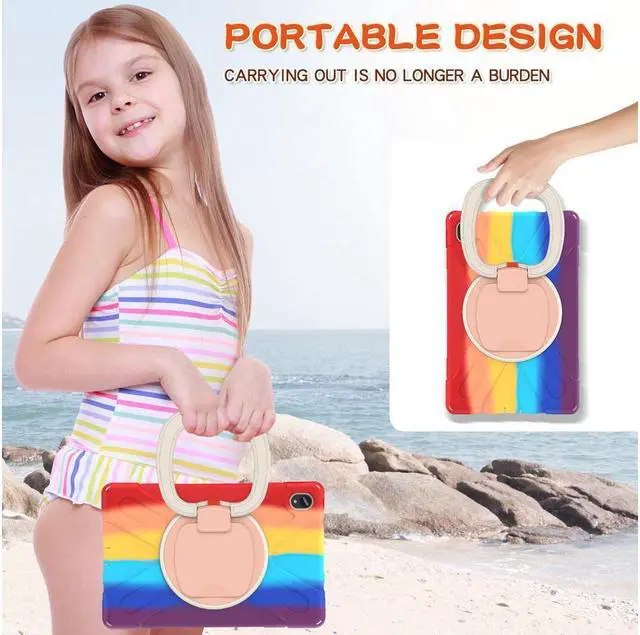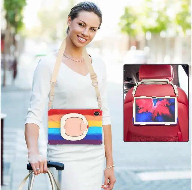 BONAEVER Case for Lenovo Tab P11 Plus / P11 11 inch 2022 2021 2020 Model TB-J606F / TB-J606X / TB-J616F / TB-J607F with Stand and Strap Shoulder Strap Shockproof Protective Cover Rainbow Red