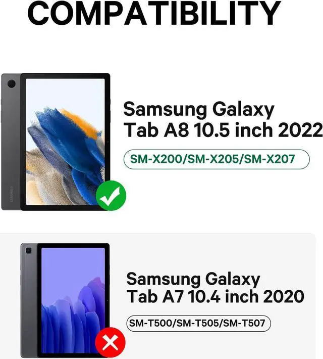 [Compatibility] Fits For Samsung Galaxy Tab A8 10.5 inch 2022 (Mdoel SM-X207/X205/X200) Tablet ONLY. Will not fit other tablets. Please kindly check your tablet model number “SM-Xxxx” in your tablet settings before purchasing this keyboard case.