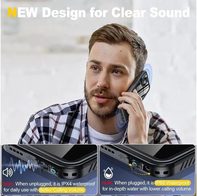 Clear Sound Quality --- iPhone 15 waterproof case has a mesh cover over the speakers and mic which allows audio to pass, and still prevents dirt and water from going through. You can also lift the flap at the bottom of the case to have a better sound if needed.