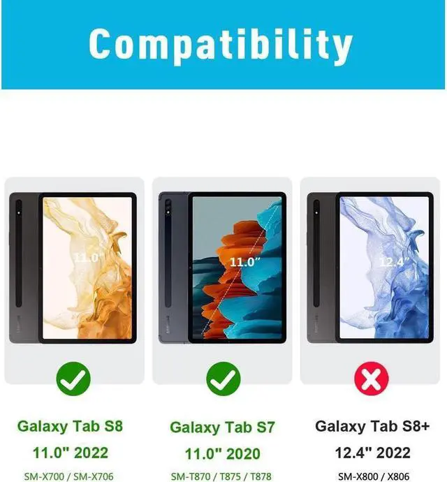 Compatibility: Designed for Samsung Galaxy Tab S7 11 inch 2020 Released (Model:SM-T870/SM-T875/SM-T876/SM-T878) And Galaxy Tab S8 11 inch 2022(Model:SM-X700/SM-X706) Tablet. Note: Please check the model number of your tablet before purchasing to prevent size errors (Pencil is not included)