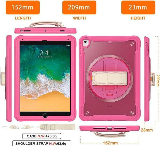 ADJUSTABLE HAND & SHOULDER STRAP: Handle can be adjusted depending on the dimension of your hand.The shoulder strap supports a more portable and secure way of carrying your iPad when you are outdoors.Perfect for during hiking, travelling and car seat.