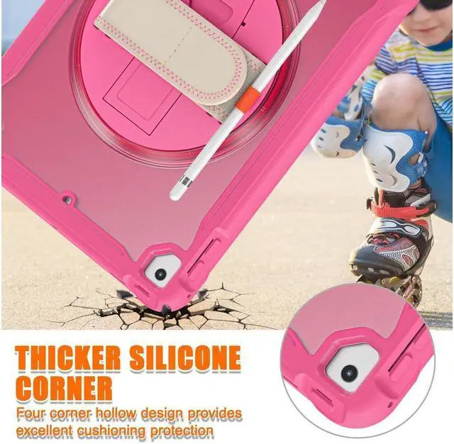 Stable rotatable kickstand: The iPad case with built-in 360 degree stand supports vertical/horizontal viewing of videos, typing and conference. Pick a nice angle, free up your hands!Ideal for kids stay-at-home online education.