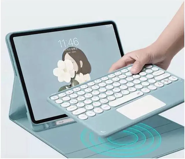 With touchpad: iPad keyboard comes with a touchpad, which support multi-finger function will offer a great aid when you do not have a mouse in hand.iPad Touchpad SUPPORT Android,Windows and Apple IOS 13 (Need open assistiveTouch on iPad).