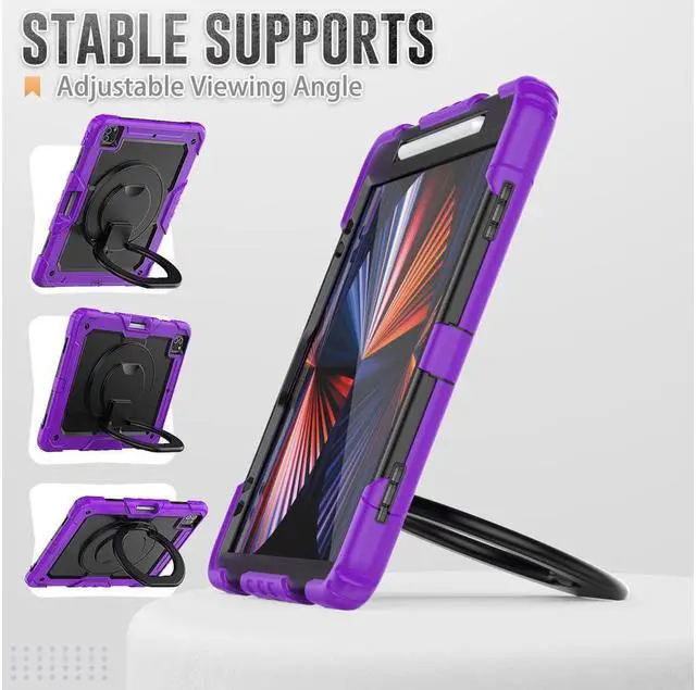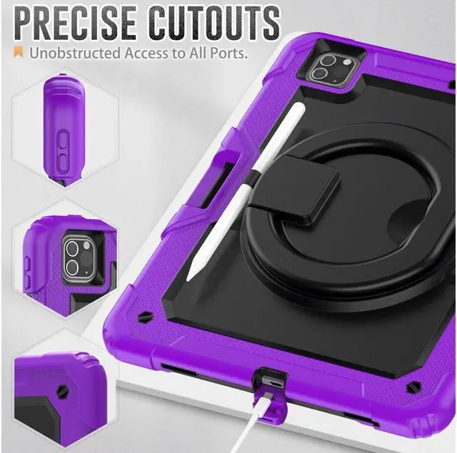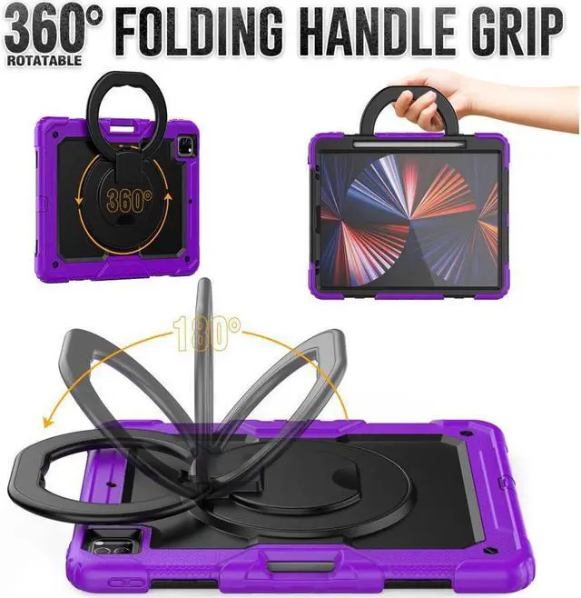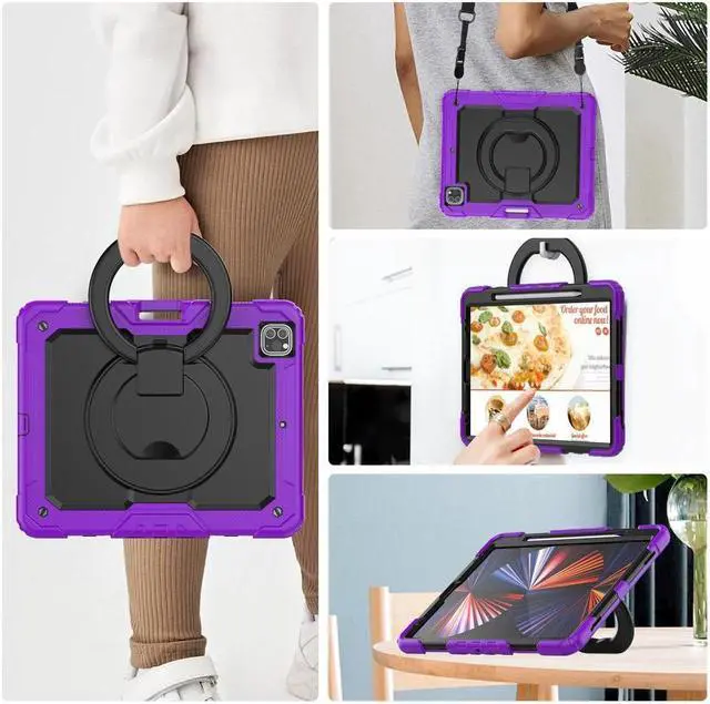 [Rotating Kickstand & Adjustable Hand Strap & Portable Shoulder Strap]: 360 degree rotating kickstand provides multi-angle viewing, adjustable hand strap makes you hold or use your iPad easily,portable shoulder strap makes your hands free, helps carry your iPad conveniently when you are at work, on a trip or gaming with kids.