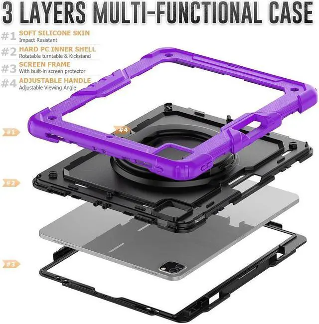 [Superior Protection with Screen Protector] 3-layer total front-and-back protection case for iPad Pro 12.9 inch, combined with 1-layer soft silicone and 2-layer hard polycarbonate front frame and back cover, providing perfect protection for your iPad against accidental drops, scratches and dust.