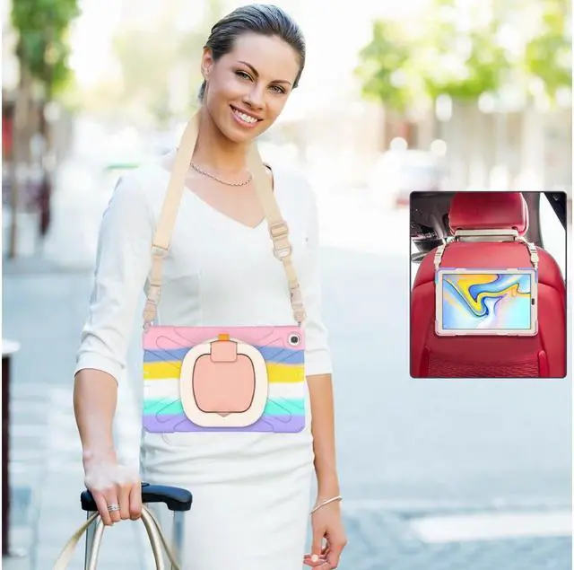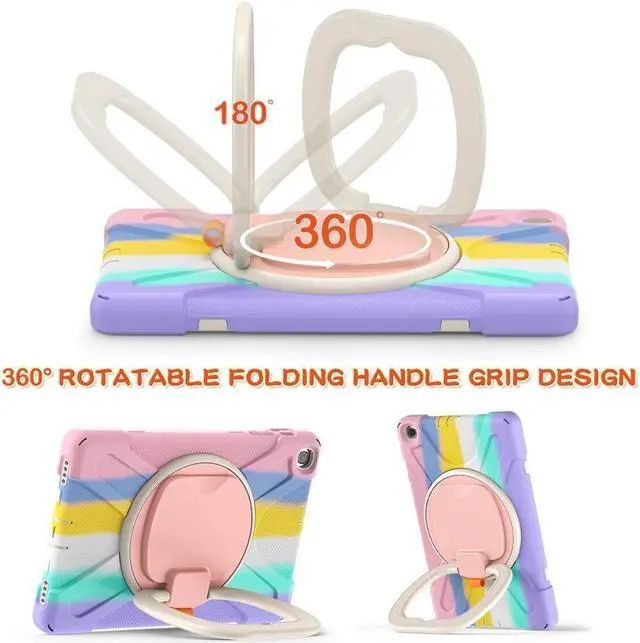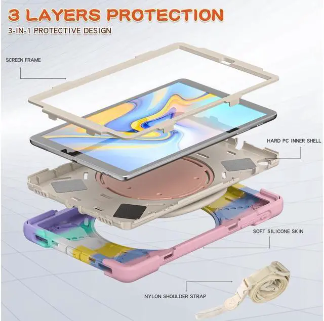 • Samsung Galaxy Tab A 10.1 Case 2019 Model SM-T515 / SM-T510 / SM-T517 with Hand Strap, Heavy Duty Full-Body Rugged Protective Shockproof Cover with 360 Degree Rotatable Stand,Shoulder Strap