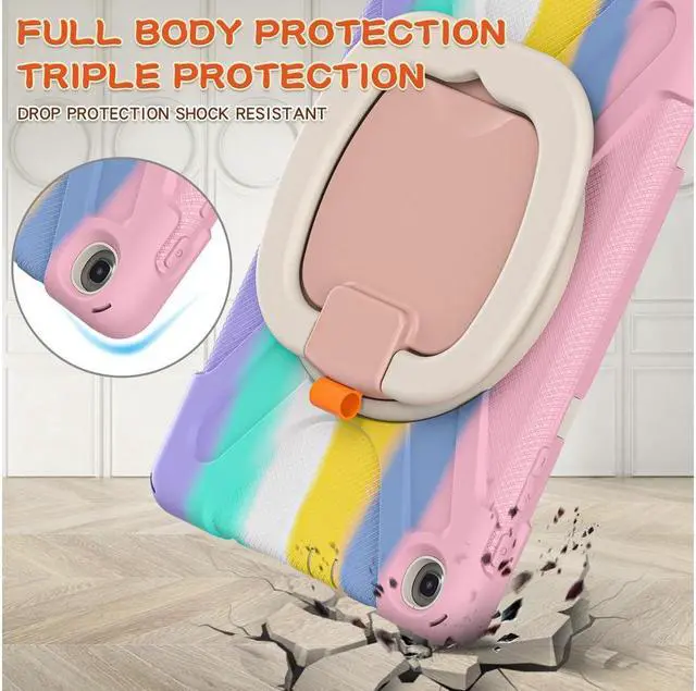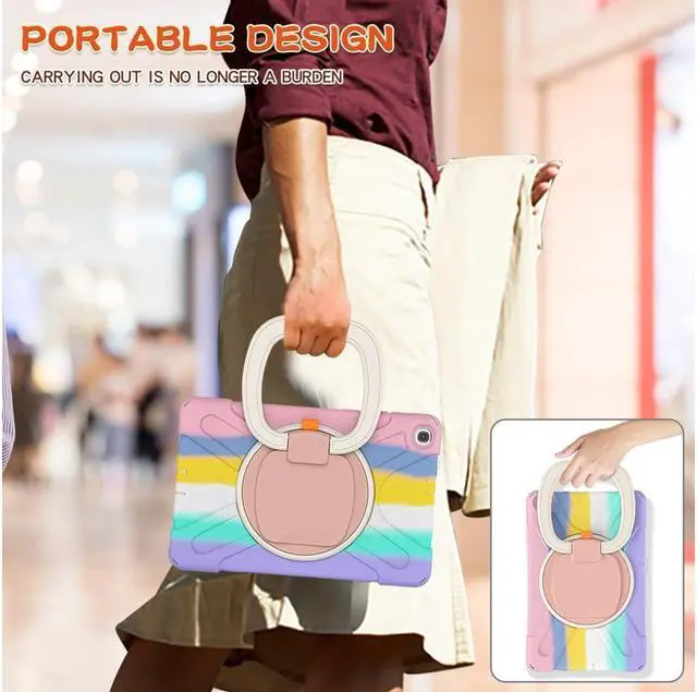 360 Degrees Rotating Stand/Hand Grip --- View your iPad in landscape and portrait mode,It can provide multi-functional use and comprehensive protection for your tablet.Ideal for kids, students, teachers or anyone else who needs it for presentations, conferences and travelling.