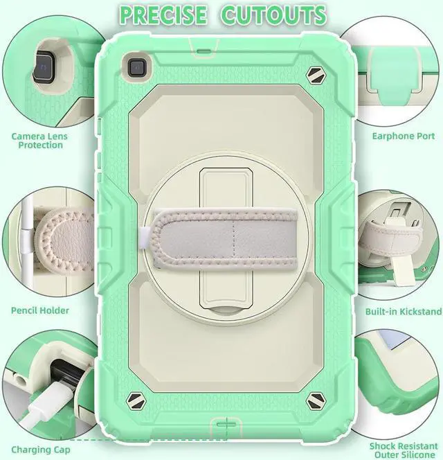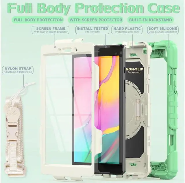 Case for Samsung Galaxy Tab A 8.0 case 2019 Model: SM-T290 / SM-T295.Full Body Protection Cover with Built-in Screen Protector Pen Holder [360 Rotating Hand Strap]