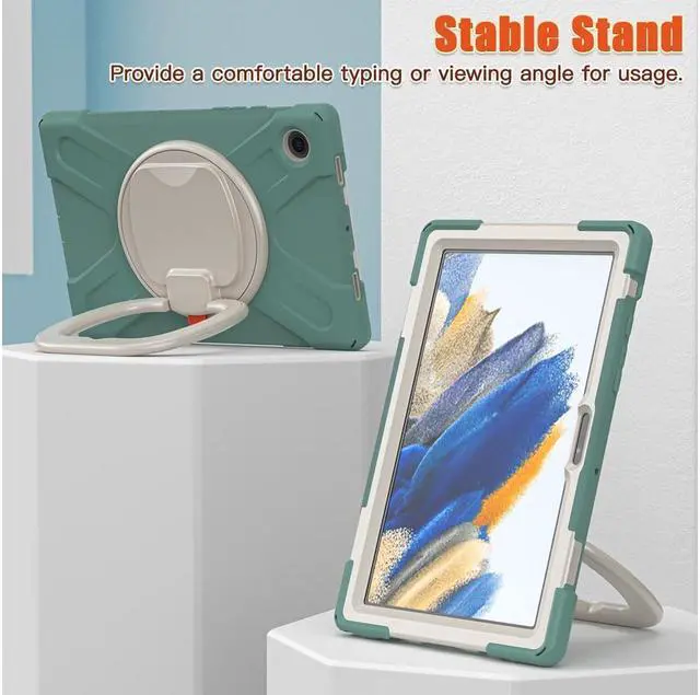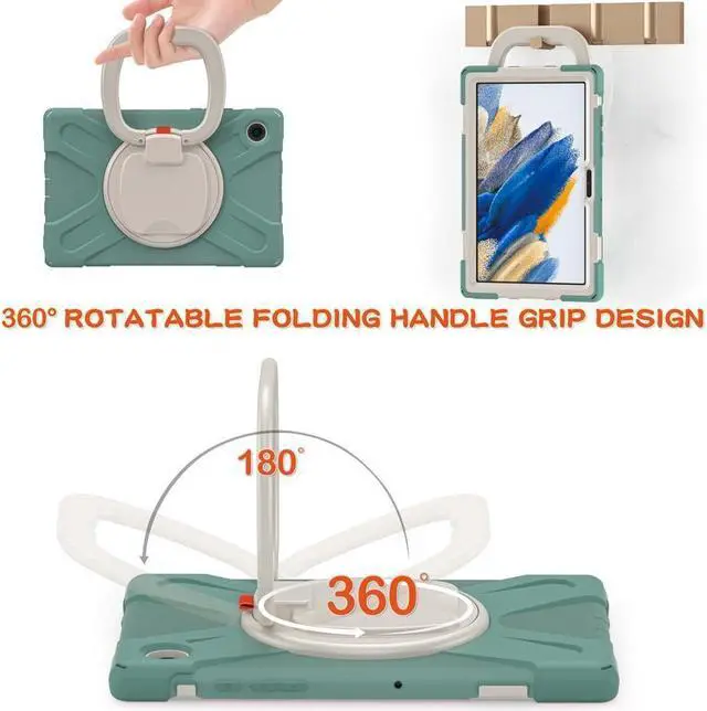 360° Swivel Kickstand & Adjustable Hand Strap: Located on the back of Galaxy Tab Galaxy Tab A8 10.5 inch 2022 shockproof case, built-in 360 degree rotating kickstand and adjustable handle hand strap provides a more flexible and convenient way to use your tablet during work, study or journey, Ideal for children, students, teachers, engineers, cashiers and waiters,etc.
