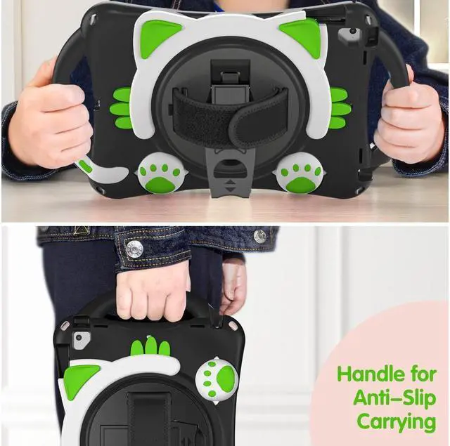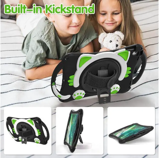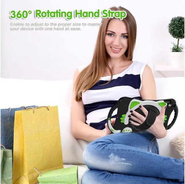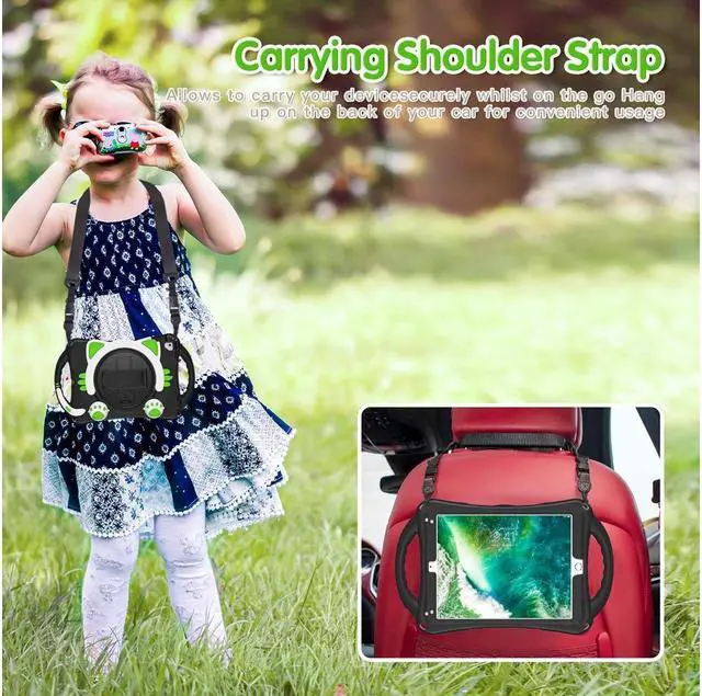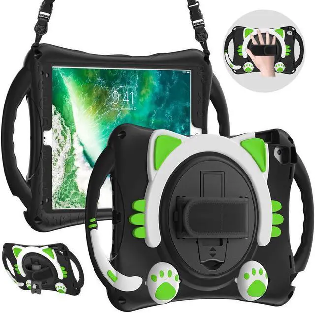 Kids Case for iPad 9.7 2018 / 2017 / Air 1 / Air 2 / Pro 9.7 , Silicone Shockproof Protective Cover with Pencil Holder, Handle Grip, Hand Strap, Kickstand, Shoulder Strap