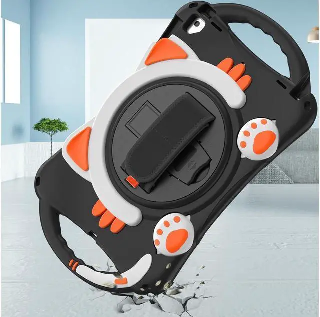 Kids Case for iPad 9.7 2018 / 2017 / Air 1 / Air 2 / Pro 9.7 , Silicone Shockproof Protective Cover with Pencil Holder, Handle Grip, Hand Strap, Kickstand, Shoulder Strap