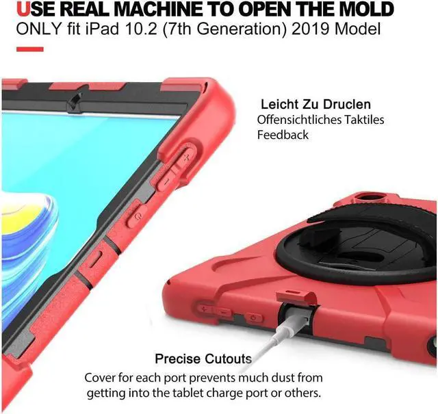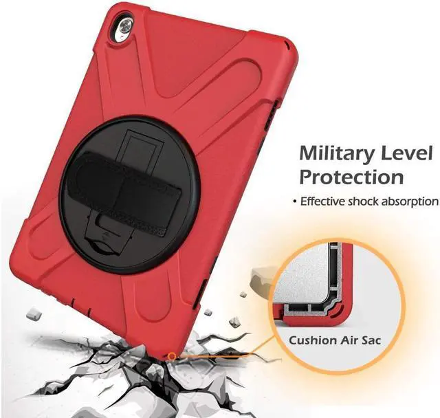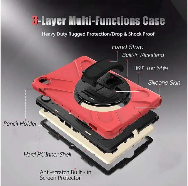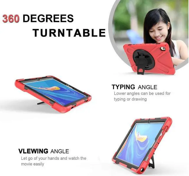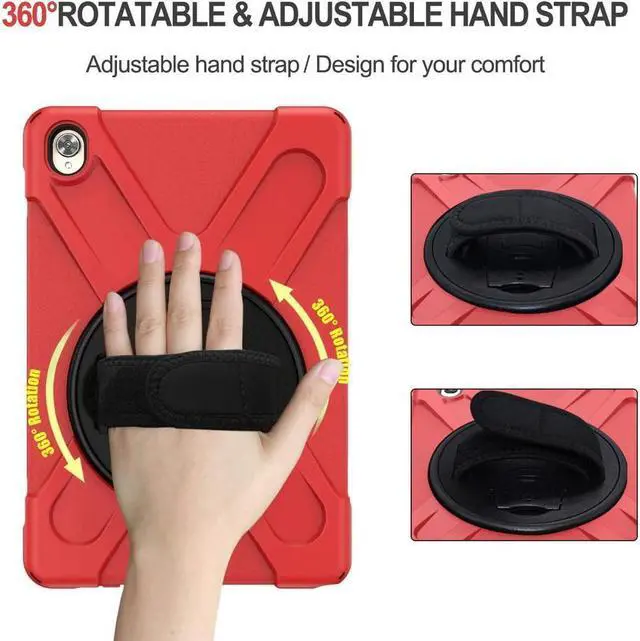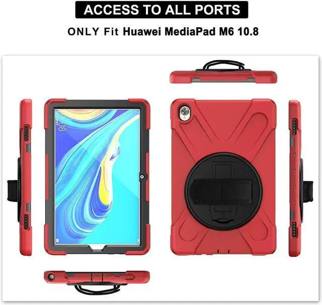 Pad M6 10.8 2019 Release Tablet, Not Fit other models. Please confirm the product before purchase. --- Adjustable Hand Strap/Removable Shoulder Strap/Pen holder --- Detachable shoulder strap / adjustable handle strap and Pen holder provide you a more convenient way to use and carry it. You can hang it in any place you need, such as kitchen, bedroom, car seat, use for your outdoor travelling, work and business. --- 360 Degrees Rotating Stand/Hand Grip --- View your iPad in landscape and portrait mode, It can provide multi-functional use and comprehensive protection for your tablet. Ideal for kids, students, teachers or anyone else who needs it for presentations, conferences and travelling. --- Three-Layer Hybrid Heavy Duty Shockproof Cover --- Hard PC clamshell with external soft silicone cushion coating and corner protection design offer max protection from drop, bump, shock and optimum comfortable grip. --- Precise Cutout Design --- Precise cutout design, easy access to buttons, ports, cameras, and speakers without removing the case.