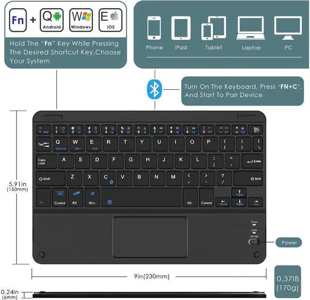 Note: This bluetooth keyboard is compatible with Android / IOS / Windows: Systerm: (Default mode: IOS Systerm)